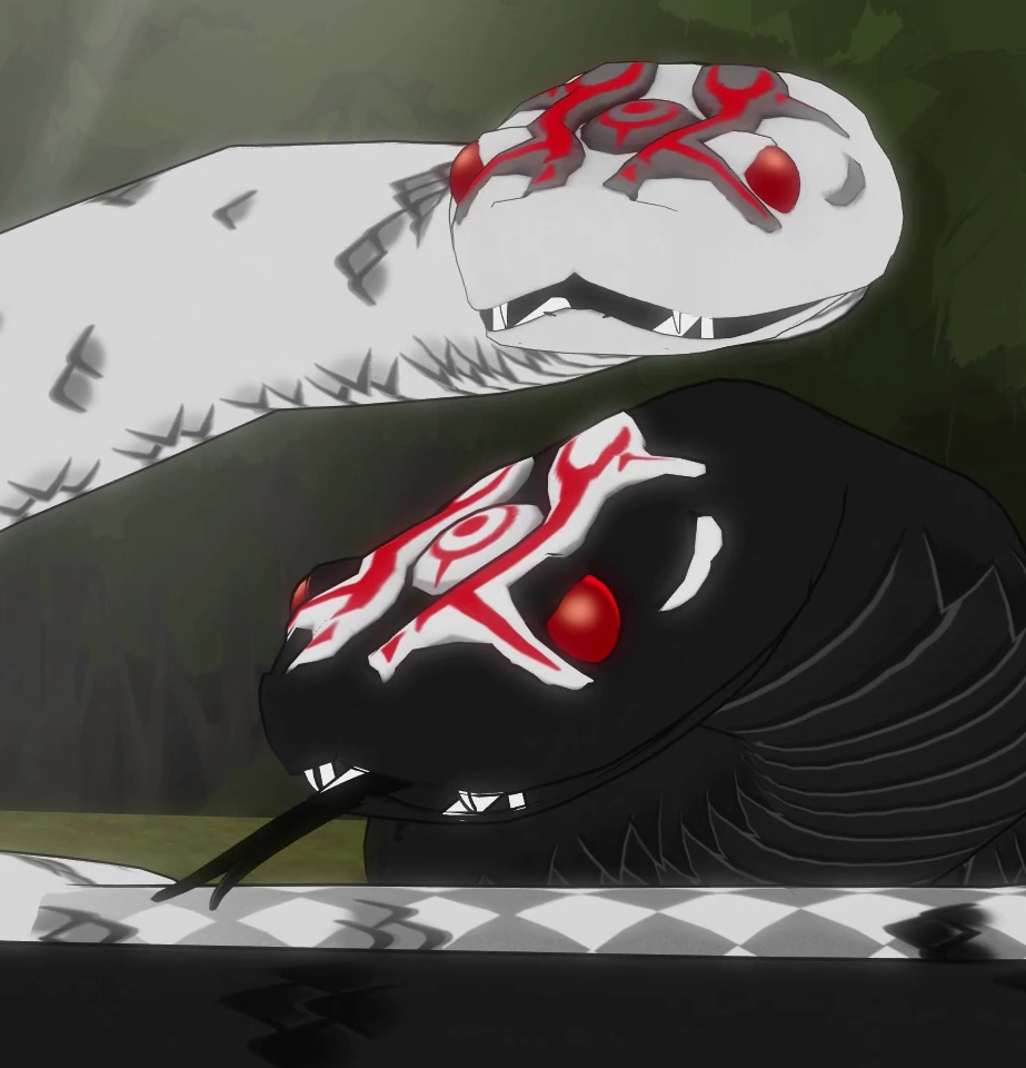 実在のヘビと同じく大きな顎で噛みつく、あるいは巻き付いて締め上げるという攻撃方法を持っている。その他に、大きな体を活かして突進することもある。毒を持っているのか、黒い頭と白い頭で能力に違いがあるのか等は分かっていない。