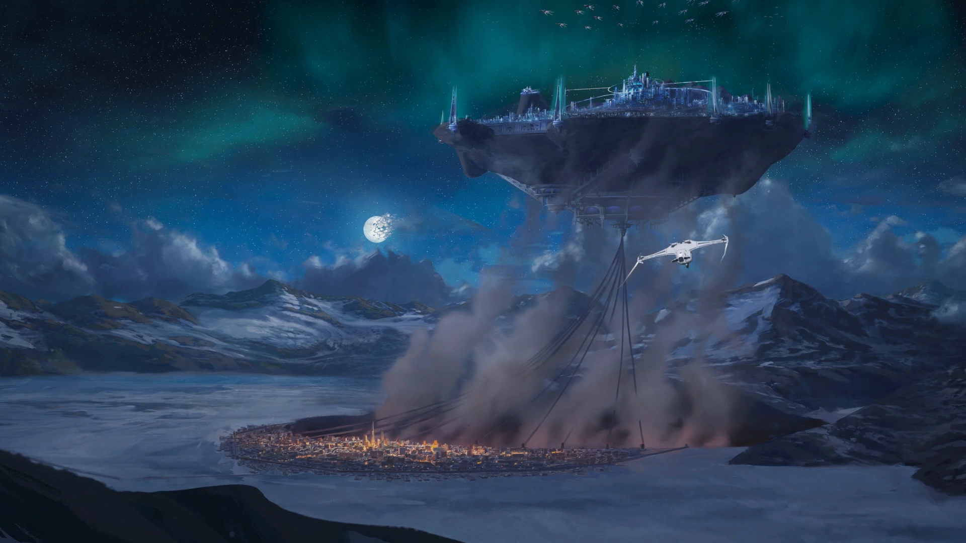 Similar to Lake Matsu's floating islands in Mistral, Atlas used Gravity Dust to keep itself floating high above the ground, tethered to the soil by a series of cables. However, this was just the public story. In reality, Atlas was kept afloat using the Relic of Creation hidden under Atlas Academy.