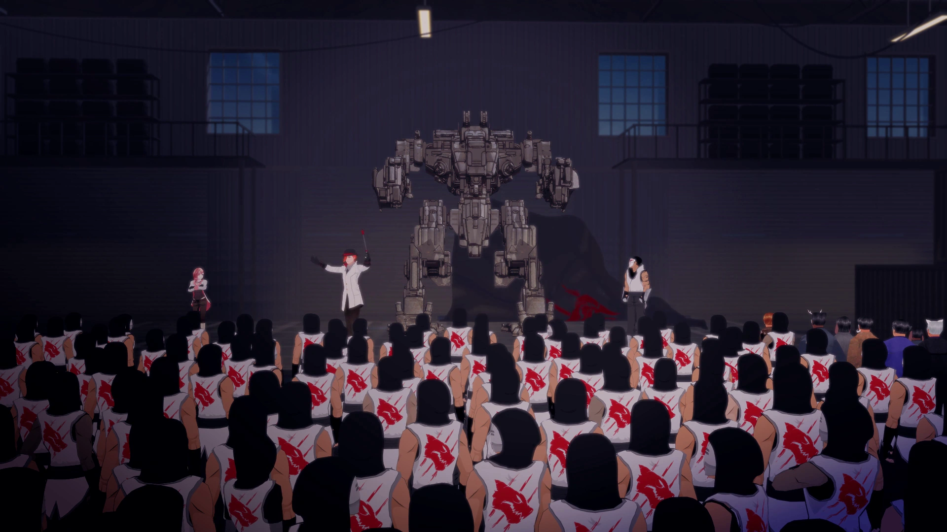 Roman addressed a group of White Fang soldiers and recruits at the faction meeting.