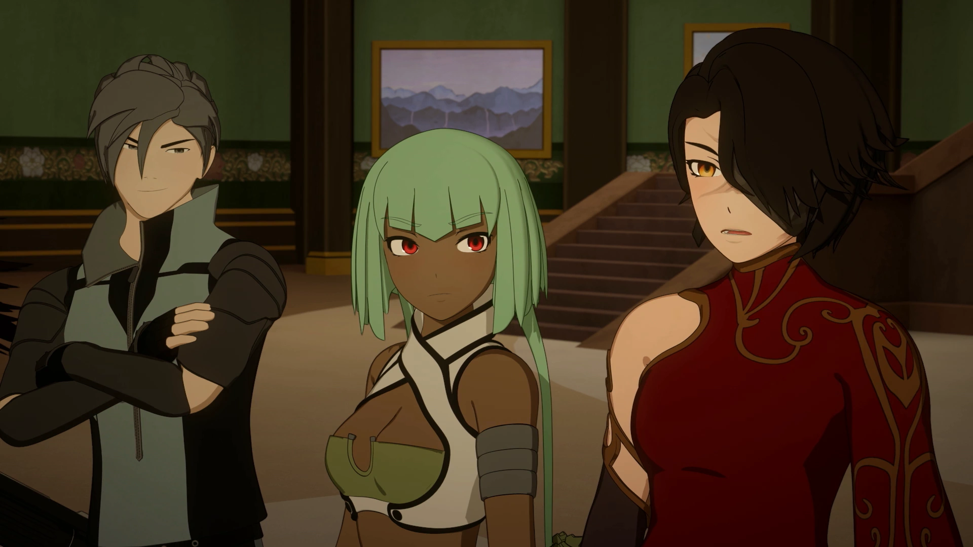 Cinder, Emerald and Mercury watching the tournament.