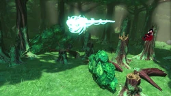 After Ruby fell into the void from the Evacuation Central Location, Crescent Rose was seen on a Unnamed Shore in front of a strange tree.