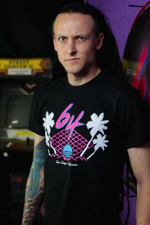 According to his biography on the Mega64 website, he is "a full-time electronics technician, loves welding, cats, air-soft, women with more tattoos than him and the everyday struggle of evil to vanquish good from the universe."[2]
