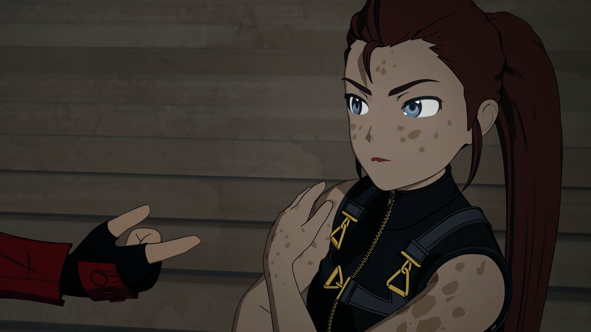 In "True Colors", Sun fights Ilia during the house-fire, and she keeps to defending herself. At the end of the attack on the Belladonnas, Ilia seeks redemption when she incapacitates Corsac, and when she and Sun finally evacuate, they have dejected looks. Ilia asks to join Blake to save Mistral, which earns Sun's forgiveness. He playfully pinches her arm to get even with her for stabbing him, after which they seem to be on good terms.