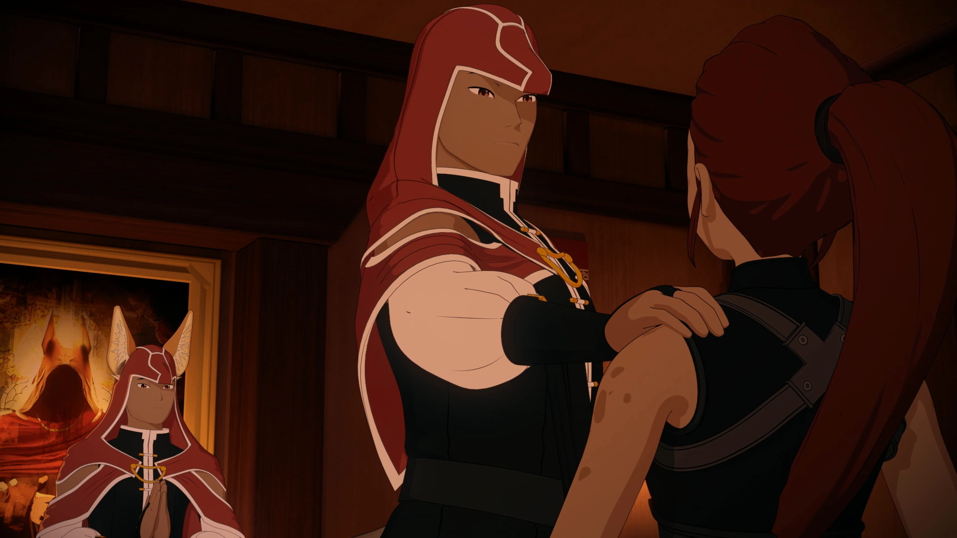 Through the White Fang, Ilia is brethren with the two fox Faunus. They know her well enough to be aware that she has a history with Blake Belladonna and informed her of Blake's return. In "Welcome to Haven", according to Blake, they blamed Ilia and they were disappointed that she is working for Adam. However, they were revealed to have already been collaborating with her prior to this and after she had her Scroll taken. Later in "Necessary Sacrifice", the brothers assign Ilia to assassinate Ghira and Kali Belladonna and bring Blake alive to Adam, much to her dismay. She eventually betrays them after losing her will to fight.