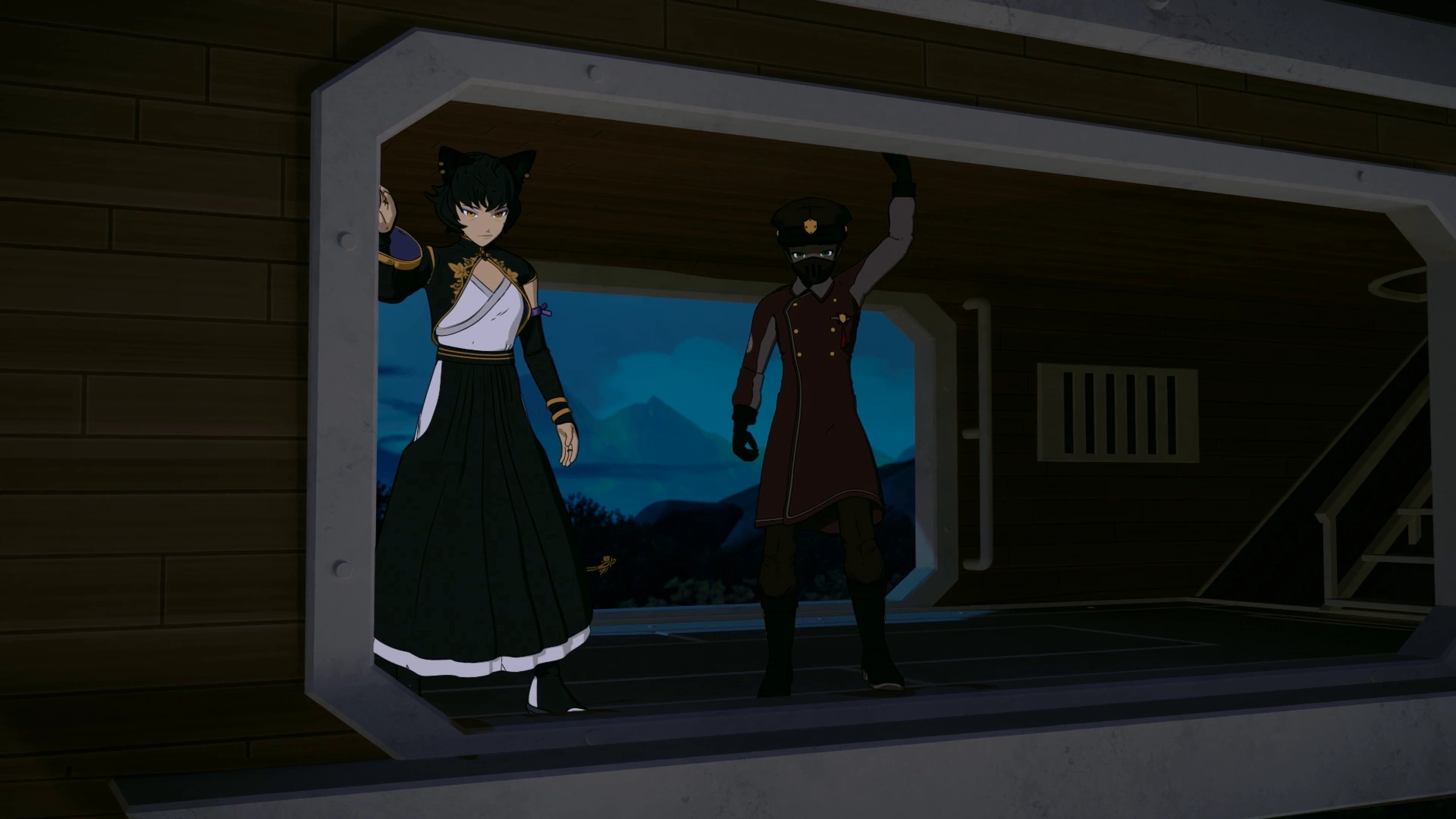 Later that night, Blake and Sun spot a masked White Fang member, even though Kali had told Sun that White Fang members do not wear masks in Menagerie. Blake and Sun give chase, but not before Sun tells Kali that it proves the true evil nature of the White Fang and that he will bring Blake back safely. Kali stands by, worried.