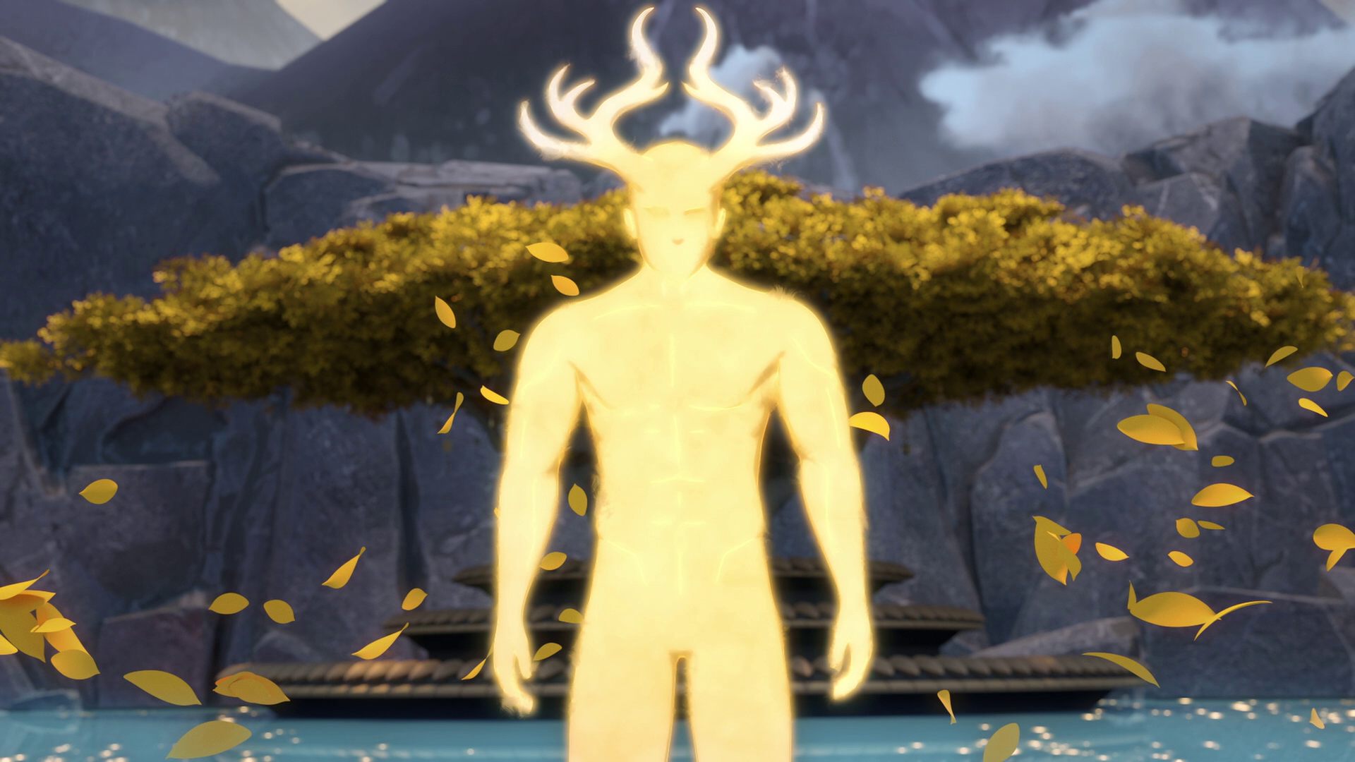 The Gods appear as translucent humanoid beings with featureless faces, horns and antlers. Both can transform into dragons.