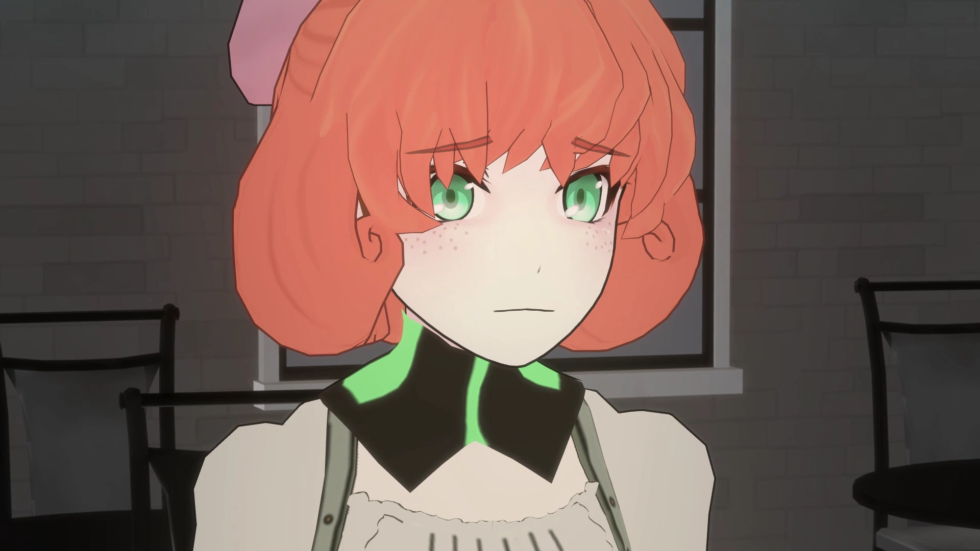It is only after Ruby stops Penny at the bottom of the stairs, explaining the worries she has involving the people they fought and their intentions and asks Penny to tell her as a friend, that Penny sighs in acceptance. After a quick scan of the grounds, Penny walks up and whispers that it is unsafe to talk there. Shortly afterward, Penny anxiously waits at a café within the city, where Ruby meets up with her.