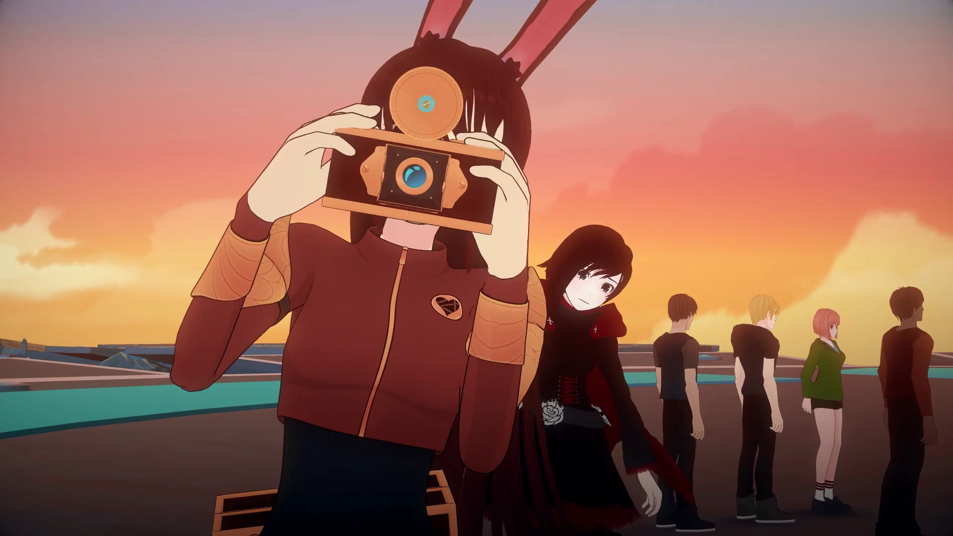 Velvet returns to Beacon from an unusually long mission with her team and is met by Team RWBY after a student announces their return. Blake promptly asks her if she's okay, while Weiss Schnee asks why their mission took longer than expected.