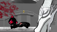 The henchmen watches in awe at their friend being whupped by a kid